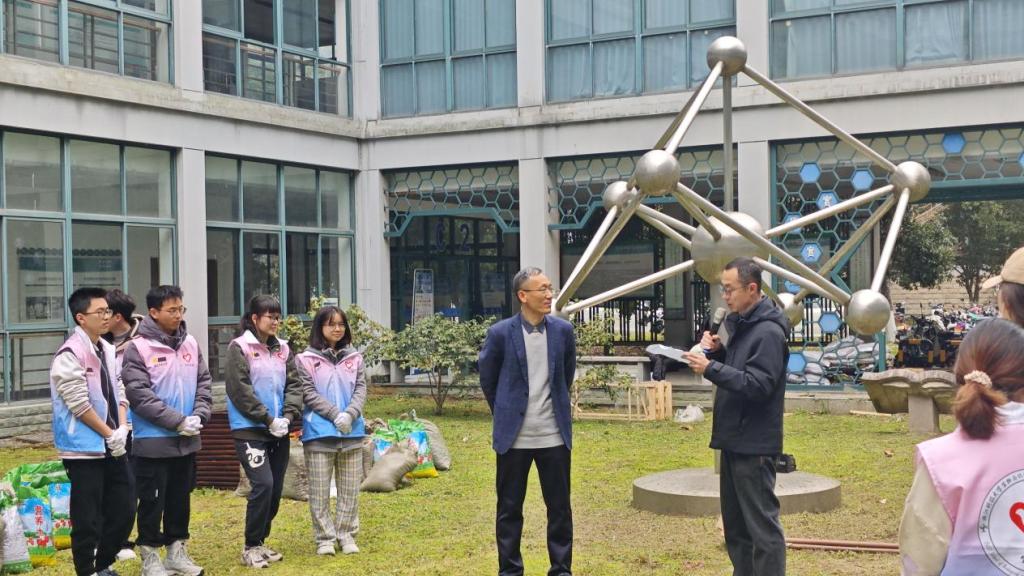 3月16日中午,生化学院30余名师生齐聚学院一楼中庭,正式启动“康园”大思政健康文化阵地建设。学院党委书记路胜利、党委副书记吴元锋、学术副院长吕鹏及师生党支部书记、20余名同学参与活动。本次活动由学院志愿者协会、牛讯文化传媒中心联合承办,学校后勤绿化队提供专业支持与技术指导。